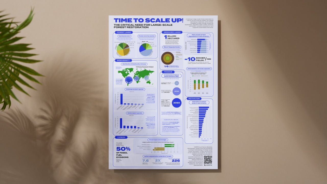 A necessidade de acelerar a restauração florestal global é mais urgente do que nunca. A ONU pretende restaurar 1 bilhão de hectares de floresta até 2030, mas até agora, alcançamos apenas 5% desse objetivo. Este infográfico fornece uma visão geral do que está em jogo ao discutir a restauração florestal.